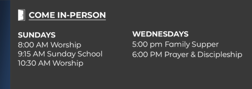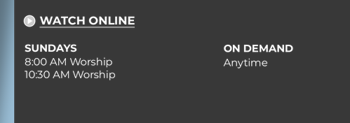 We meet in-person and online on Sunday morning at 8:00 AM and 10:30 AM.