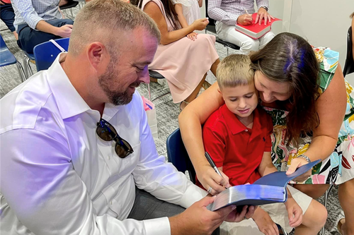 Child Dedication is a time of public and personal commitment, and is an important milestone for parents. Parents will make a promise to teach their kids about building a relationship with Jesus Christ. (Deuteronomy 6:5-7) This service happens twice a year, in the spring and fall.