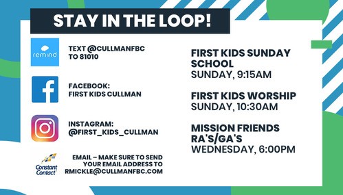 Kids need different things at different ages, and we want to help your kid understand and learn God’s Word at a pace that is easy for them to understand and retain. As your kid ages through FirstKids here at Cullman FBC, the lessons will age with them to ensure that they are relevant and engaging for your kids.